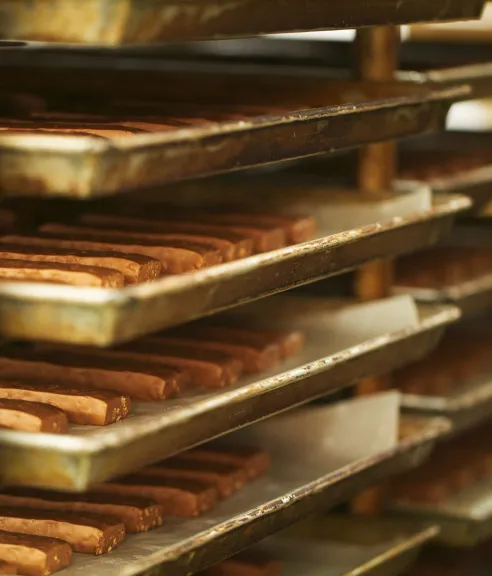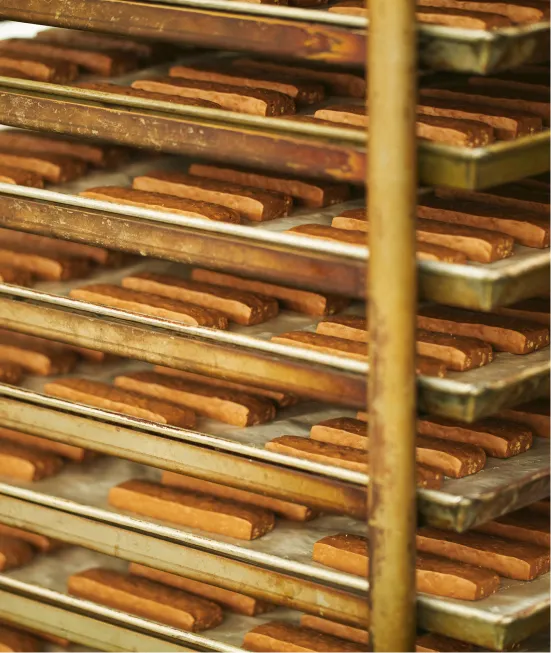国内の菓子メーカーでは希少な「有機JAS認定工場」として量産設備を整えています。満たすべき項目は膨大ですが、有機JAS認証管理に関するすべての基準をクリア。製造スタッフの知識向上とレベルアップに努めており、安心安全な商品をお届けするため管理を徹底しています。